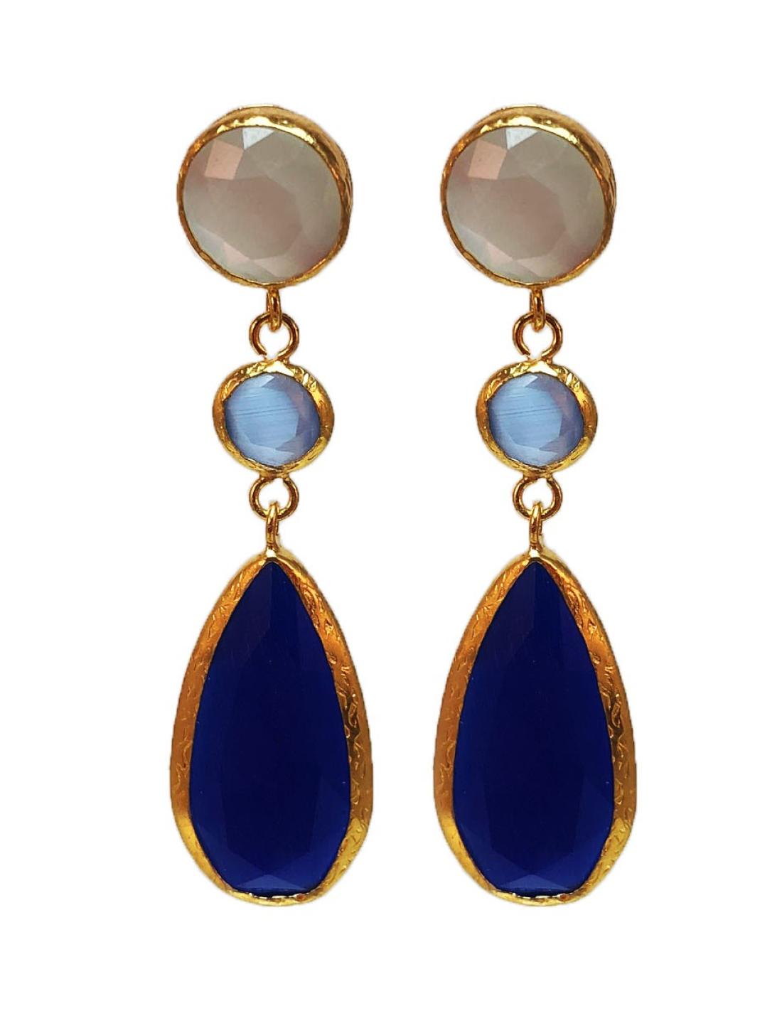 Pendientes largos para bodas azulones de bisuteria fina en bronce dorado con piedras naturales finamente trabajadas que sentiras llevar una joya con diseño actual y favorecedor, te quedaran perfectos con tu vestido de fiesta o noche y estaras guapisima en bodas, ceremonias y siempre que te los pongas con estos colores tan atrayentes que iluminan el color de tus ojos. Medidas aprox.. 6 x 1,5 cm